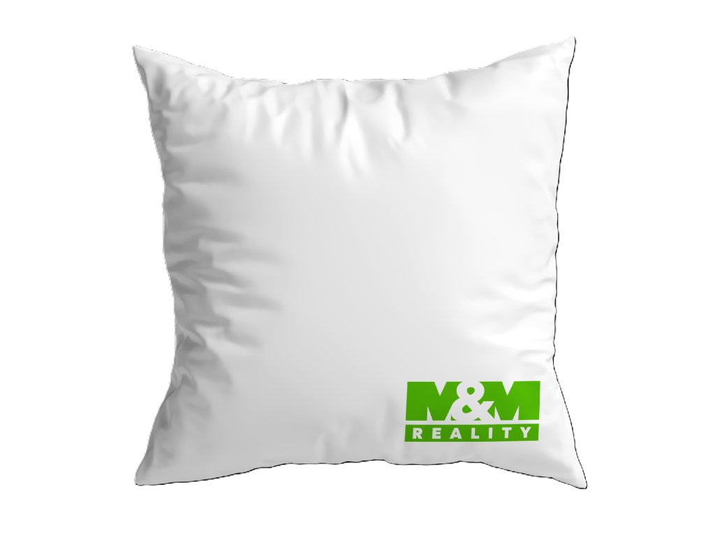 Bílý povlak na polštář PREMIUM z polyesteru s uzavíratelným zipem a zeleným logem MMR. Doporučujeme do něj výplň o rozměrech 40x40 cm.