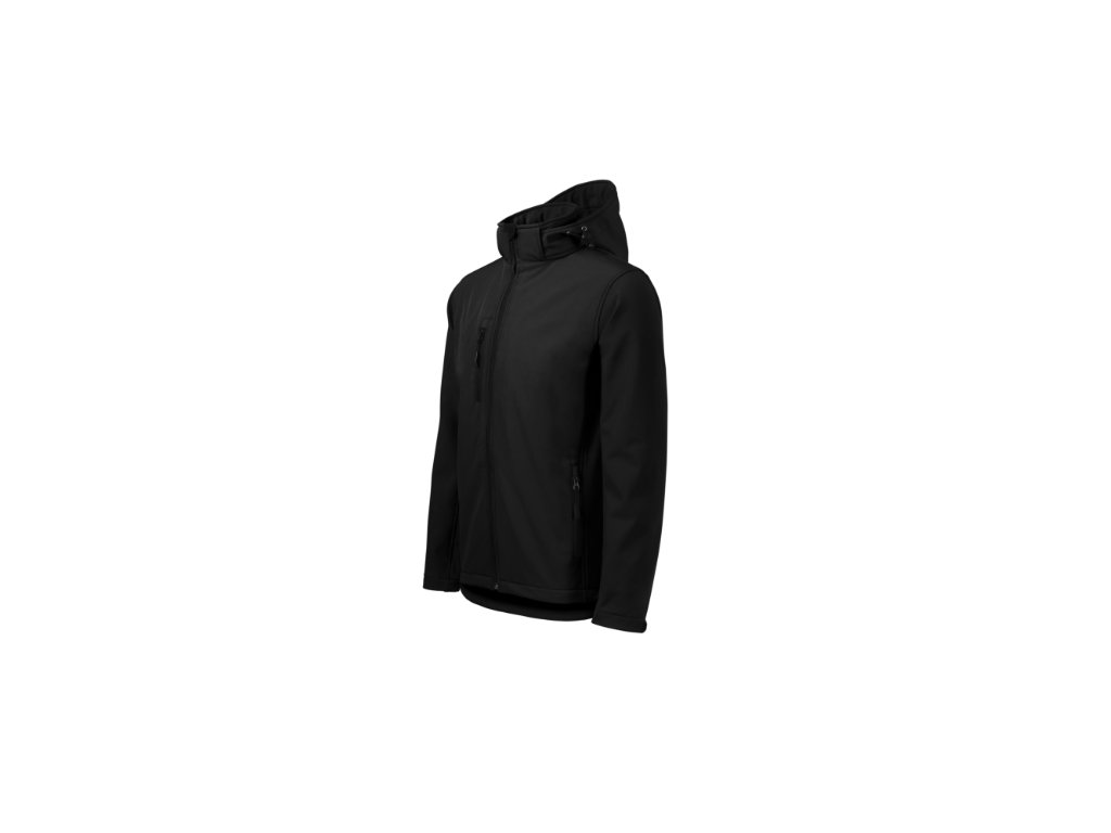 Softshellová černá bunda pánská se zelenou výšivkou MMR na prsu.